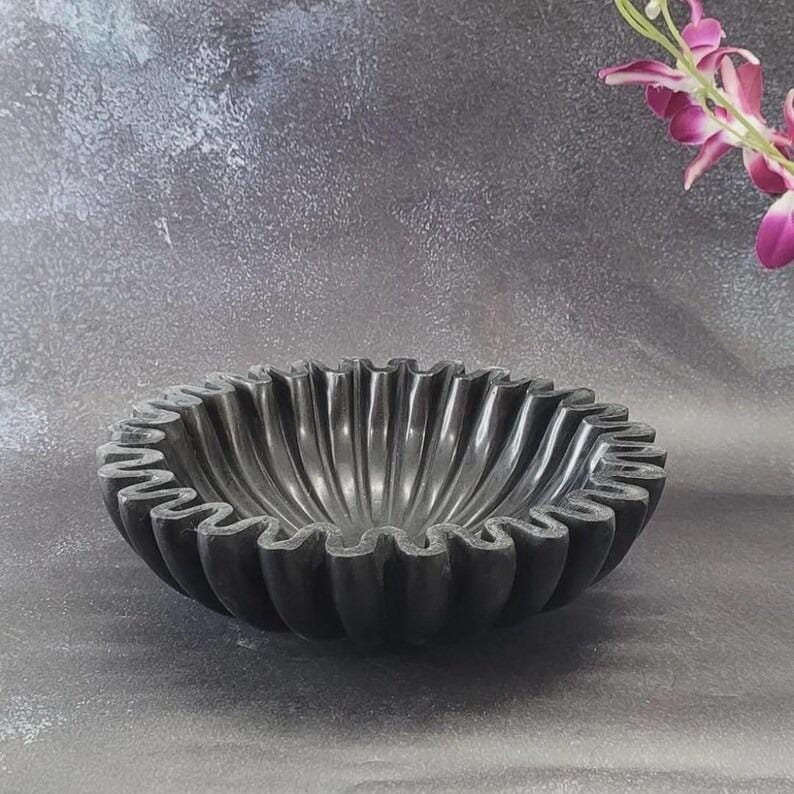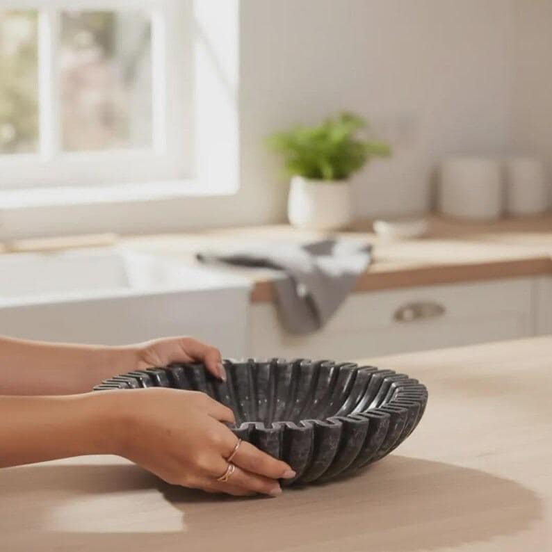 Bring a bold yet refined statement into your home with this modern fluted black bowl, a sculptural piece that effortlessly balances artistry and functionality. Designed with a mesmerizing ripple form, this bowl transforms an everyday object into a centerpiece-worthy work of decor.