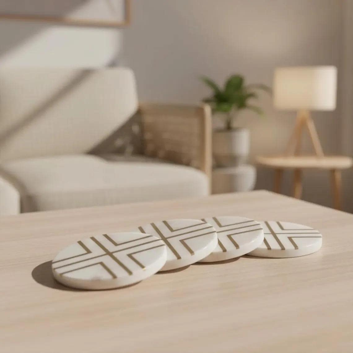 Elevate your everyday moments with this modern marble coaster set, where clean design meets timeless natural stone. Crafted from smooth white marble and accented with a refined geometric inlay, these coasters bring a subtle yet sophisticated touch to your living space.