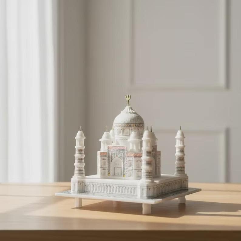 Bring the beauty of timeless architecture into your home with this mini Taj Mahal marble replica, a finely crafted piece inspired by one of the world’s most iconic monuments. Designed with remarkable attention to detail, this miniature captures the elegance and symmetry of the original structure in a compact, display-ready form.
