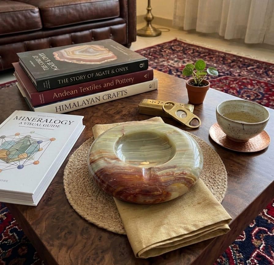 Versatile Décor Statement More than a functional item, this ashtray doubles as a decorative centerpiece. Whether styled on a coffee table, office desk, bar setup, or lounge area, it complements interiors ranging from rustic and earthy to contemporary and minimalist. Pair it with wood, leather, or metallic accents to highlight its natural beauty.